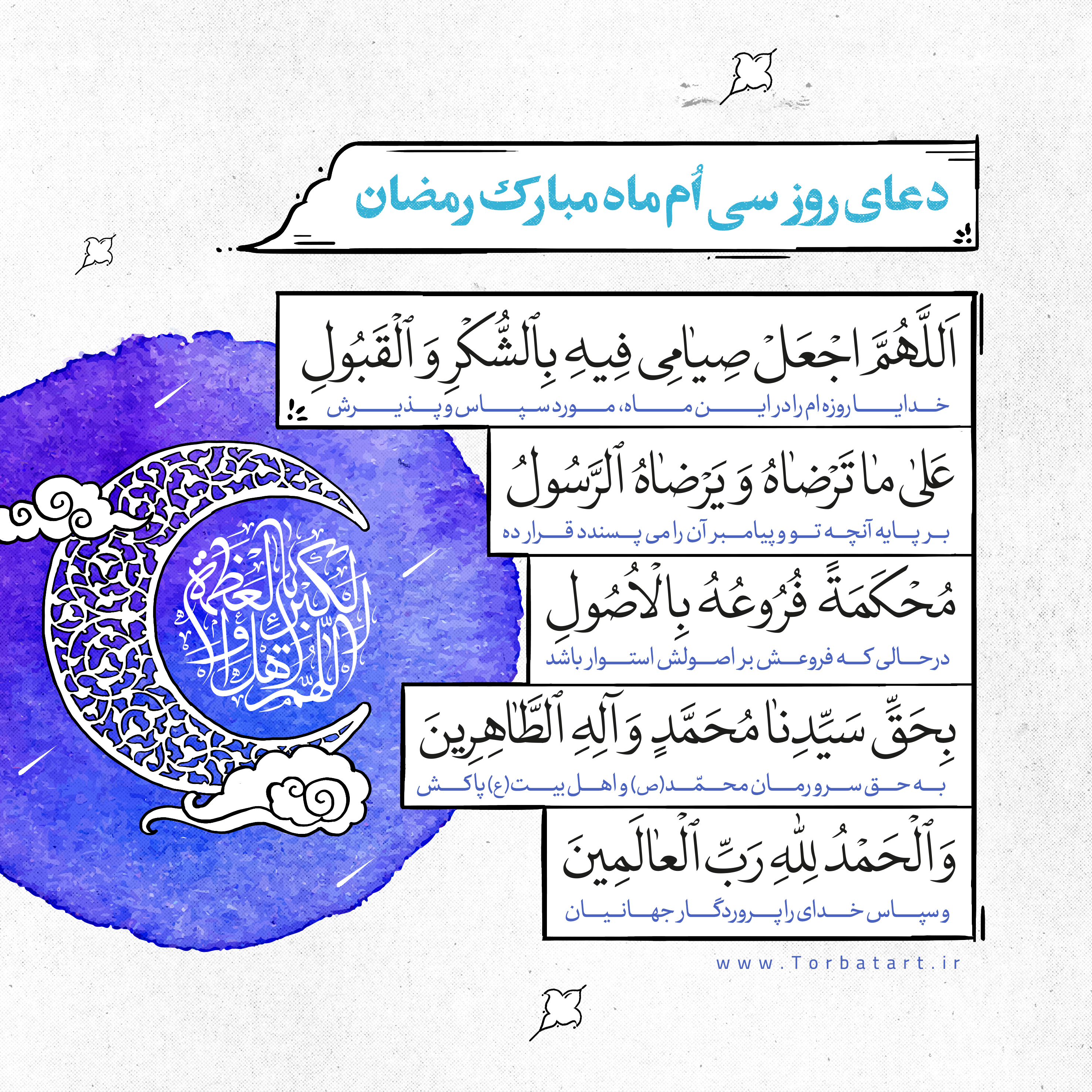 دعای هر روز ماه مبارک رمضان که به صورت گرافیکی برای هر روز آماده شده است و به صورت رایگان برای دانلود در اختیار شما عزیزان قرار گرفته است.