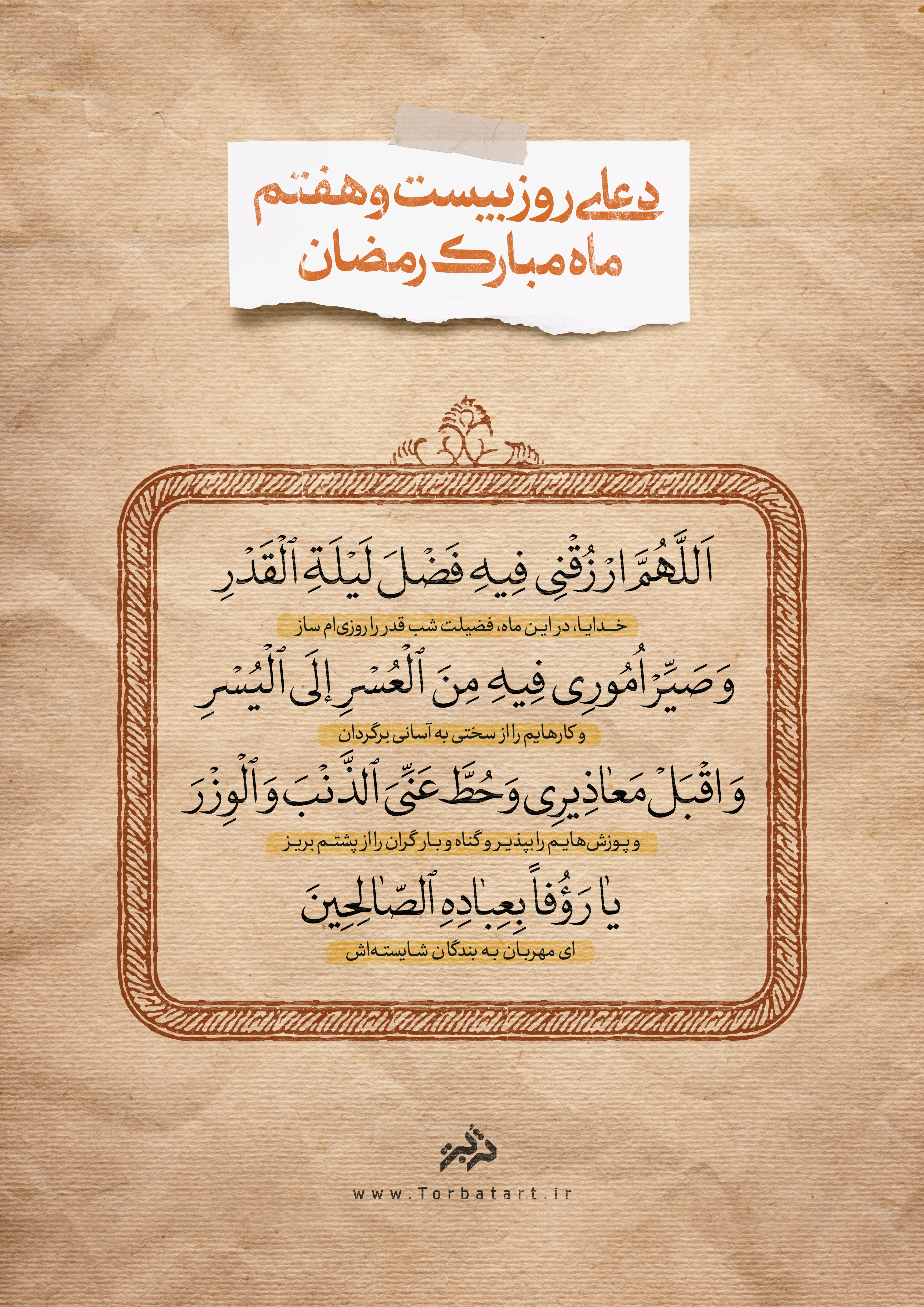 دعای روز بیست و هفتم ماه مبارک رمضان